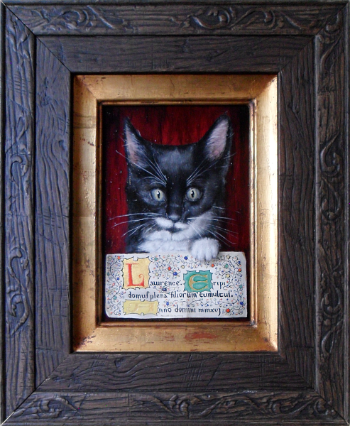Lawrence, 2017, oil, gold, kitten, poplar, painting