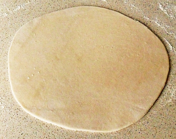 Sprinkle some more flour on the work surface and roll one of the balls out until it is round(ish) and even.