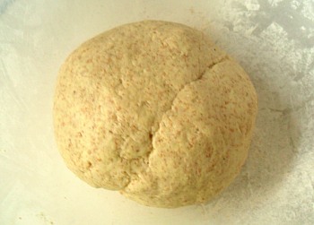 Add the water, a little at a time, mixing with a fork, until you get a stiff dough.