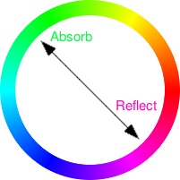 Move the mouse over the colour strips in the diagram on the right to see how the colours that are absorbed and reflected are related to each other.