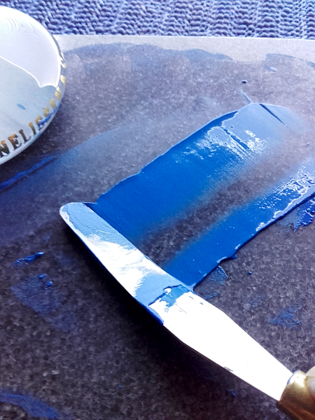 at this stage, you can also smear the paint across the surface of the slab with the palette knife so that the blade is
