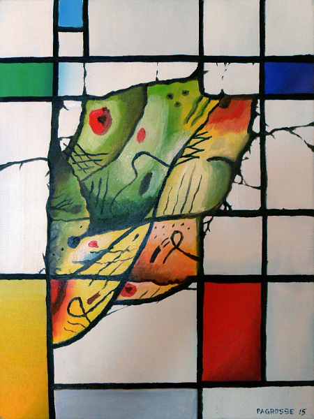 The strict order of the Mondrian is digested by the insanity of the Kandinsky. |