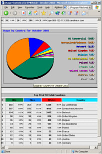 Monthly graphs and stats include users (so you can see who has been accessing your password protected directories), browser types and OS's, countries of origin, hits, files, pages and so on, day-of-the-month and hour-of-the-day breakdowns, URLs visited, entry and exit points and so on.