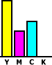 If we take away the magenta completely (because, in this case, it is the smallest of the three) and then take away the same amounts of the other three inks, we end up with a modified mixture of inks as those on the right for our example.