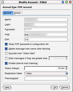 To configure KMail, click on the configure icon or, on the menu: Settings | Configure KMail.