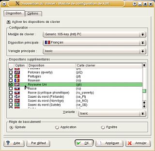Learning the layout of a foreign keyboard is all right if you are stuck at a terminal or you have no way of changing it - or, if you are learning to use it. However, if you are using a GUI such as the example in the screenshot - KNOPPIX using KDE - then there is an easier way of changing it.
