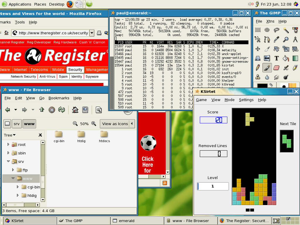 One other useful feature is border-snapping. On KDE, the default action is that when you are moving a window around the desktop, when it gets within a certain range of another window or the edge of the screen, it will move itself up to that edge. This makes placing windows on the screen very easy as you don't end up with them overlapping or with gaps in between them - you end up with the most efficient use of your desktop.