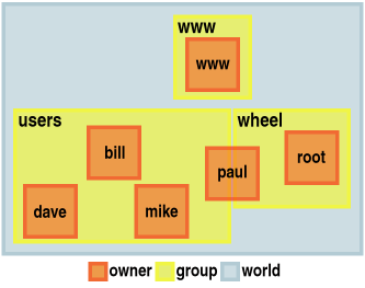 On a UNIX or UNIX-like system, examples of which are OpenSolaris, Linux, the BSDs and many more, files and directories have access permissions based upon three groups of users: Owner; Group; and, World.