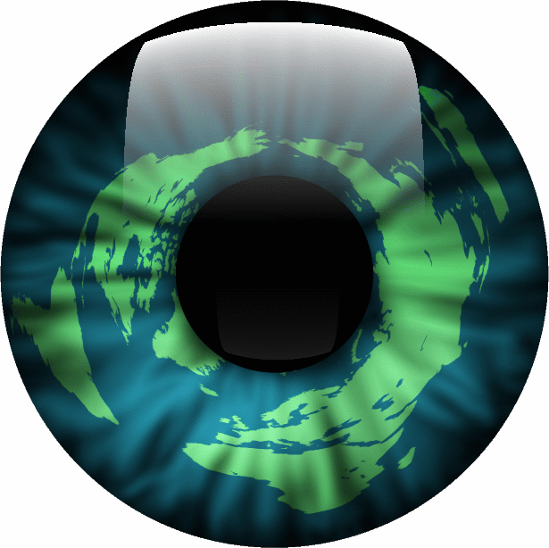 Now, we have an iris and pupil, complete with reflections that we can add to an eyeball and eyelids.